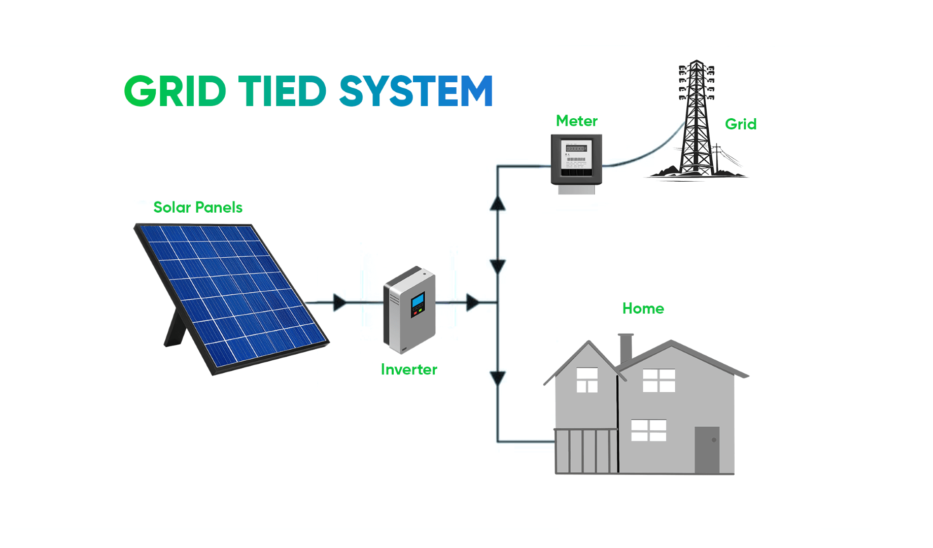 This configuration is the most prevalent among urban businesses. The system connects directly to your utility grid, enabling you to draw supplemental power during periods of low solar production while allowing excess energy to be fed back through net metering.