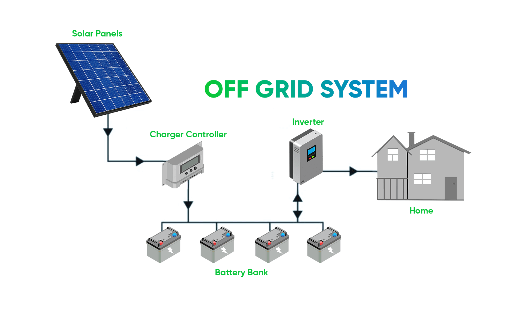 This standalone solution operates independently of the utility infrastructure. Power reliability is contingent upon adequate energy storage capacity, making proper system sizing critical.